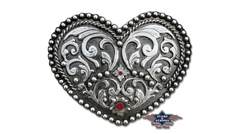 Buckle GS-315: exklusiver Western-Buckle in Herzform und roten Strasssteinen.