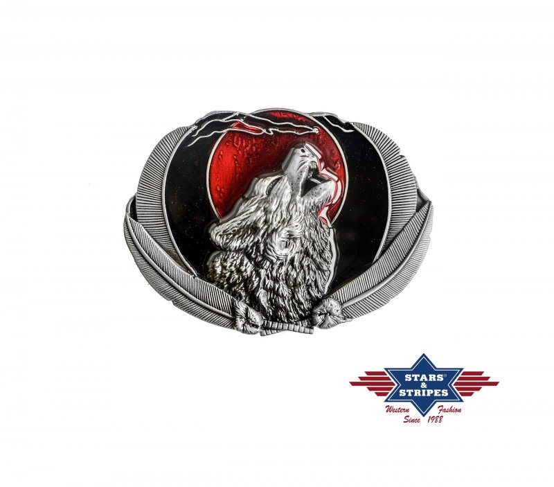 Gürtelschnalle GS-424: Schöne Gürtelschnalle im Western-Design mit Emaille Effekten und geschwärztem Hintergrund