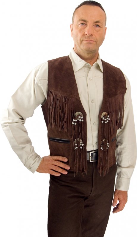 Weste W 26343: Wildlederweste mit Fransen. Zwei Außentaschen