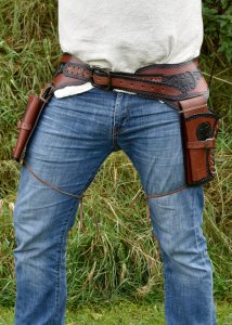 Ein Muss für jeden Western-Darsteller ist der Revolver, besser sind jedoch zwei Revolver! Damit diese sicher und fest am Körpergetragen werden können, aber im Ernstfall schnell gezogen sind, braucht es einen passenden Revolvergürtel.