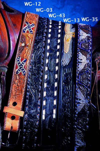 Gürtel aus robustem Rindsleder, die Schnallen sind durch Druckknopfsystem auswechselbar.
