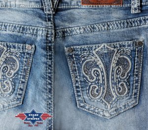Jeanshose Lexi: Bootcut-Jeans mit gestickten Details an den Gesäßtaschen, Stone-Wash-Effekt, Kontrastnähten und einem 5-Pocket-Design.