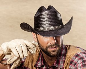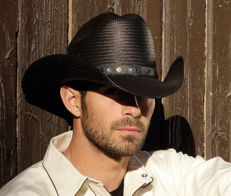 Hut Bronx: Leichter Strohhut in schwarz, mit Conchos und Nieten besetztem, hochwertigen Lederband. Angenehm zu tragen durch weiches Innenband.