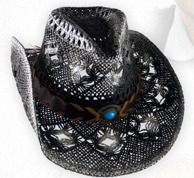 schwarzer Strohhut SH 24422 mit silbergrauen Schattierungen